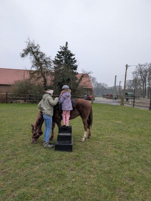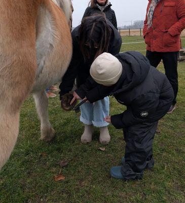 Das therapeutische Reiten wird von der qualifizierten Reittherapeutin Dana Hunker durchgeführt und bietet den Kindern wertvolle körperliche, emotionale und soziale Impulse. Die Mädchen und Jungen lernen, die beiden Pferde Angel und Alice zu putzen und zu streicheln, bauen Vertrauen auf und erleben die Freude des Reitens.