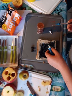Mit verschiedenen Zutaten entstanden fantasievolle Gesichter, lustige Tiere, abstrakte Muster und farbenfrohe Landschaften. Der Kreativität waren keine Grenzen gesetzt – jedes Toastbrot wurde zu einem persönlichen Meisterwerk. Dabei ging es nicht nur um das Gestalten, sondern auch um das bewusste Erleben von Lebensmitteln.