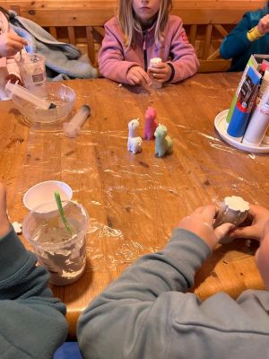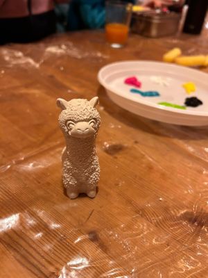 Die Tierliebhaber:innen durften die Alpakas füttern und beobachteten neugierig, wie vorsichtig und freundlich die Tiere auf sie reagierten. Anschließend wurde es kreativ: aus Ton formten die Kinder eigene kleine Alpakas, die sie danach mit viel Fantasie und Farbe bemalten.