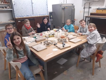 An vier Freitagnachmittagen trafen sich 7 Schülerinnen und Schüler im Alter von 7 bis 12 Jahren im Jugendzentrum Karo in Wesel. Unter der Anleitung von Susanne Kern, Dipl. Designerin, kreierten die Kinder bunte und einzigartige Unikate aus Ton und Speckstein wie Schalen und Tiere. Mit viel Spaß wurde auch der eigene Schmuck hergestellt.