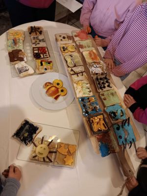 Das Beste kam zum Schluß: natürlich durften die kleinen Künstlerinnen und Künstler ihre Toast-Kreationen genießen. Stolz, Lachen und zufriedene Gesichter zeigten, wie viel Spaß dieser neue Workshop gemacht hat.