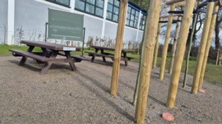 Eine Bank der Bürgerstiftung KREAKTIV steht ab nun auf dem Schulgelände der Astrid-Lindgren-Grundschule in Spellen. Dort entsteht derzeit etwas ganz Besonderes: ein grünes Klassenzimmer! Dabei handelt es sich um einen pädagogisch gestalteten Lernort mitten in der Natur. Unter freiem Himmel können die Kinder lernen, lesen, forschen und gemeinsam entdecken. Auch als Rückzugsort in den Pausen ist er sehr beliebt. Grüne Klassenzimmer erhöhen die Lernmotivität durch einen Ortswechsel, stärken das Bewusstsein für Natur und Ressourcen und fördern das Lernen mit allen Sinnen. Freiluftunterricht ist schon etwas Außergewöhnliches!