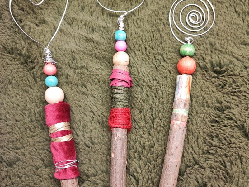 Aus Holunderholz, bunten Perlen, Kordeln und ein wenig Draht können die Kinder einen eigenen Seifenblasenstab zum Mitnehmen basteln. Das selbstgebaute Unikat darf direkt vor Ort auf Funktionsfähigkeit getestet und schimmernde Seifenblasen in die Luft gepustet werden.