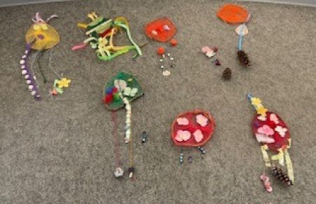 Mit unserer Projektleitenden Christiane Diker, Künstlerin, wurde aus verschiedenen Materialien zauberhafte Traumfänger gestaltet. Aus einem Holzkranz, Netzen, verschiedenen Bändern und ganz viel Deko wurde gebastelt. Auch eigene Schätze durften nicht fehlen und wurden in die wunderbaren Werke integriert.
