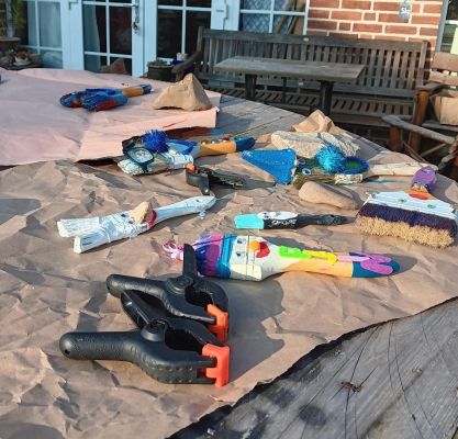 Aus aussortierten Pinseln entstanden im Laufe des Vormittags zauberhafte und überraschend vielseitige Figuren: bunte Zauberwesen, schelmische Monster, geheimnisvolle Waldgeister und sogar ein paar glitzernde Glücksbringer. Mit Farben, Stoffresten, Draht, Naturmaterialien und viel Vorstellungskraft erweckten die jungen Künstler ihre Pinsel zu neuem Leben.