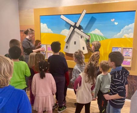 Nach der Verteilung der Bäckermützen durften die Kinder ihrer Kreativität freien Lauf lassen und diese ganz individuell bemalen. Anschließend erhielten sie spannende Einblicke in den Kornwerdergang und konnten den Mahlvorgang hautnah miterleben. Besonders beeindruckend war es für alle, selbst mit anzupacken: Gemeinsam wurde der Mühlstein bewegt, sodass sich das Mühlrad in Gang setzte.