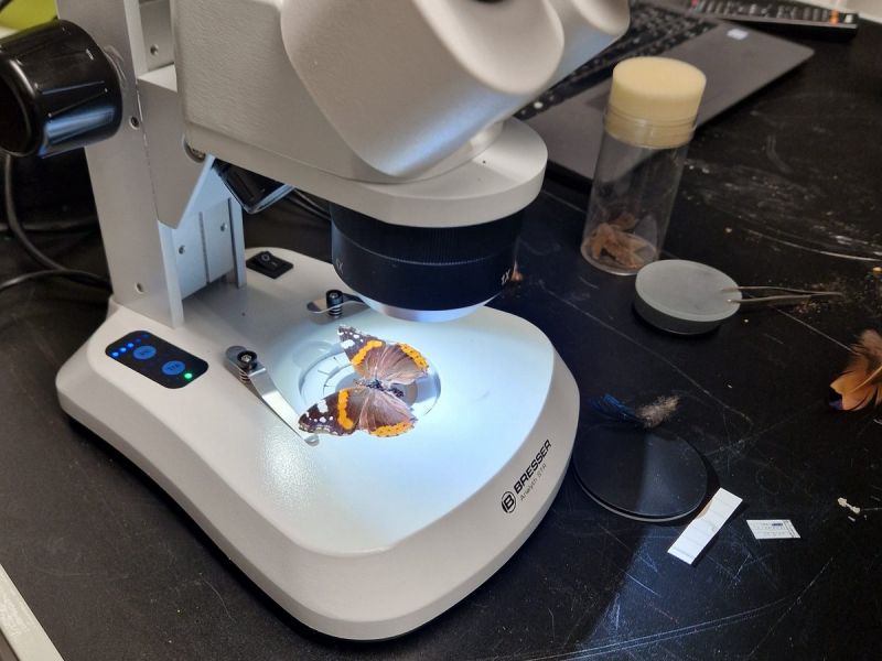 Dazu bringt der Naturpädagoge Stefan Leiding hochwertige Mikroskope der Firma Bresser mit. Zu den gesammelten Naturmaterialien kommen auch stets Exponate dazu. Spannend zu sehen ist, wie ein Libellen, - oder Schmetterlingsflügel aufgebaut ist, oder wie Beeren und Pilze von innen aussehen.