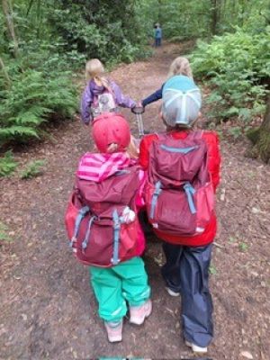 Von April bis September lernten 8 kleine Waldforscher:innen den Aaper Busch in Wesel im Wandel der Jahreszeiten kennen. Tabea Lorenz, zert. Waldpädagogin, zog immer montags mit den 5-und 6-Jährigen mit dem bepackten Bollerwagen in ein neues Abenteuer. Wie weit springen unsere Waldtiere – wie weit schaffe ich? Wieviele Kinder benötigen wir, um unseren Begrüßungsbaum zu umarmen? Die kleinen Naturliebhaber:innen lernten viel über Raupen, Schmetterlinge, Käfer und beobachteten Tag- und Nachtfalter. Sie bauten ein Waldtelefon und sammelten gemeinsam Holz, um ein Tipi zu bauen. Aus den unterschiedlichsten Materialien die der Wald zu bieten hat, kreierten die Kinder ihren eigenen Barfuß-Pfad. Zwischendurch kitzelte es schon heftig unter den Füßen! Seiltauziehen, Balancieren und „blinde" Baumbegegnungen machten sehr viel Spaß. Besonders aufregend war die Waldwanderung mit der Suche nach der vergrabenen Schatzkiste. Das Highlight „Klettermax und Schaukelfee" gemeinsam mit Sylke Döringhoff, Naturpädagogin, rundete das tolle Waldprojekt ab. Es wurde gebaut, geklettert und aus Seilen, Karabinern und zahlreichen Knoten Schaukeln gebaut, in denen einfach nur faul gebaumelt wurde.