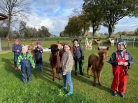 Tolle Stunden bei den Alpakas auf dem Alpakahof Nienhaus in Wertherbruch verbrachten am Samstag, 11. November 2023 acht Schülerinnen und Schüler im Alter von sechs bis acht Jahren.